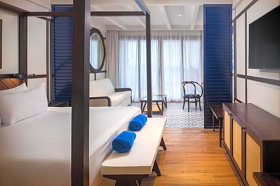 PRIVILEGE MASTER SUITE is 958 square feet and includes a king-size bed 150-183 width plus a sofa bed plus living room, balcony, cable tv, and safe and is Wheelchair-accessible.